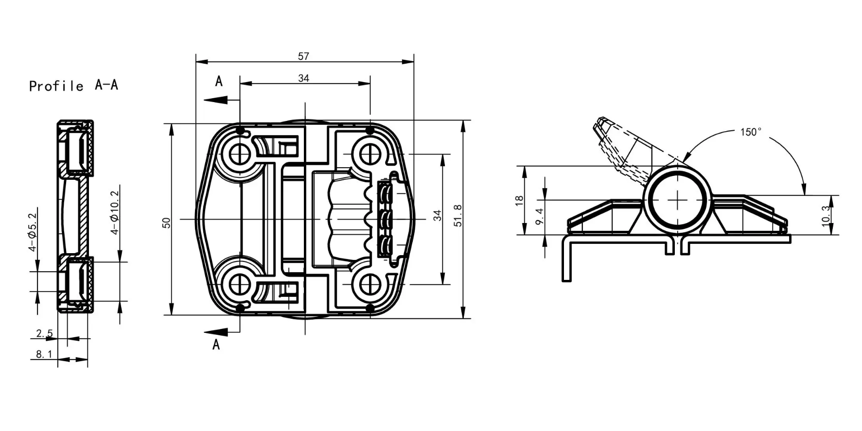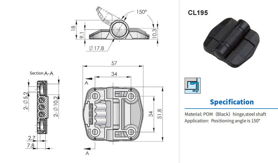 Matériau : corps de charnière en plastique POM, arbre rotatif Q235